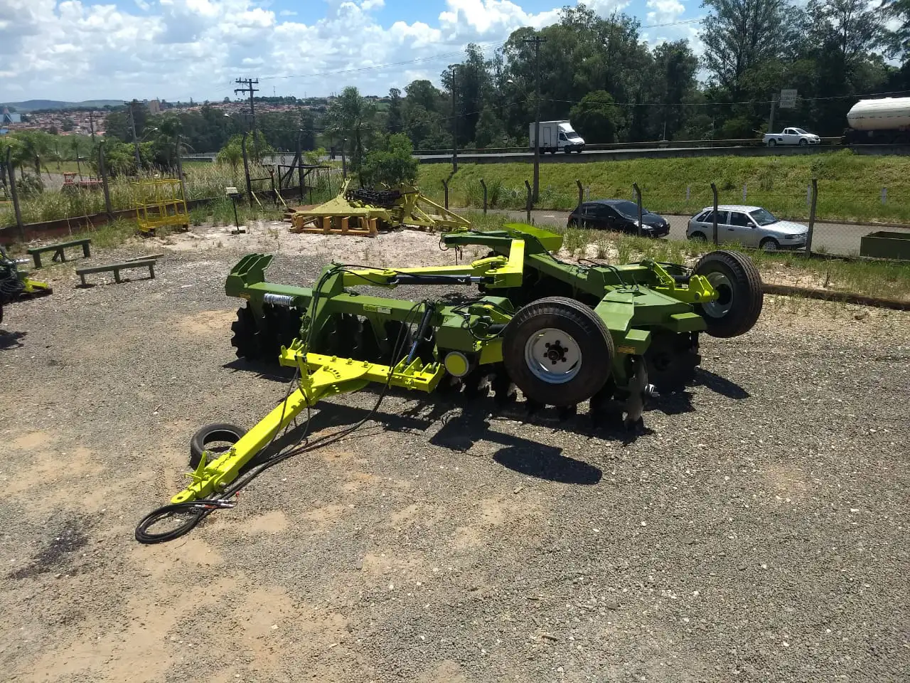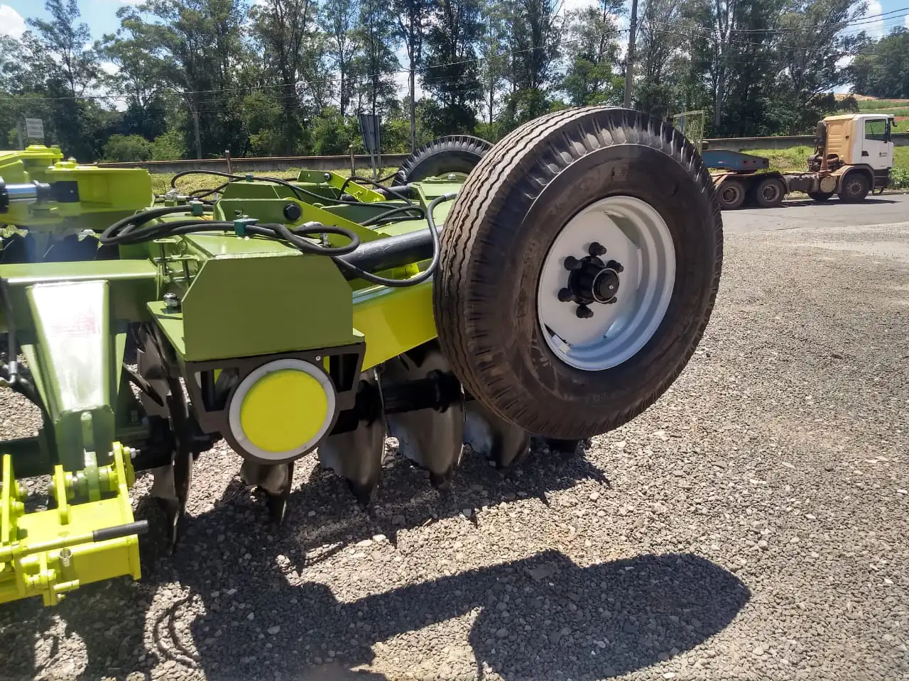 Possui sistema de transporte inteligente com pneus 11L15 (12 e 18 discos), pneus 10,5/80-18 (20 a 24 discos) e pneus 1.000×20 (26 a 34 discos), acionados via comando hidráulico direto da cabine do trator.