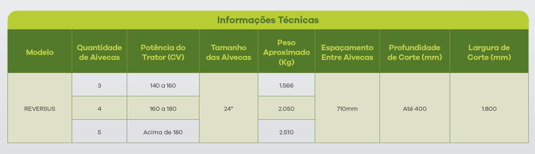 O arado de aiveca reversível Ecoagrícola Reversus, possui estrutura reforçada e resistente para suportar o esforço de seu trabalho de maneira dinâmica e eficaz. O nivelamento do equipamento e sua reversão lateral são feitos através de cilindros hidráulicos. Equipamento engatado ao trator pelo terceiro ponto possui ótima entrada no solo realizada pela sua aiveca revestida com placa da UHMW, material muito resistente ao desgaste, aivecas que devido seu formato, permitem que facilmente seja incorporado resíduos de cultivos anteriores ao solo para que seja efetuado novo plantio. As aivecas possuem sistema de desarme automático.